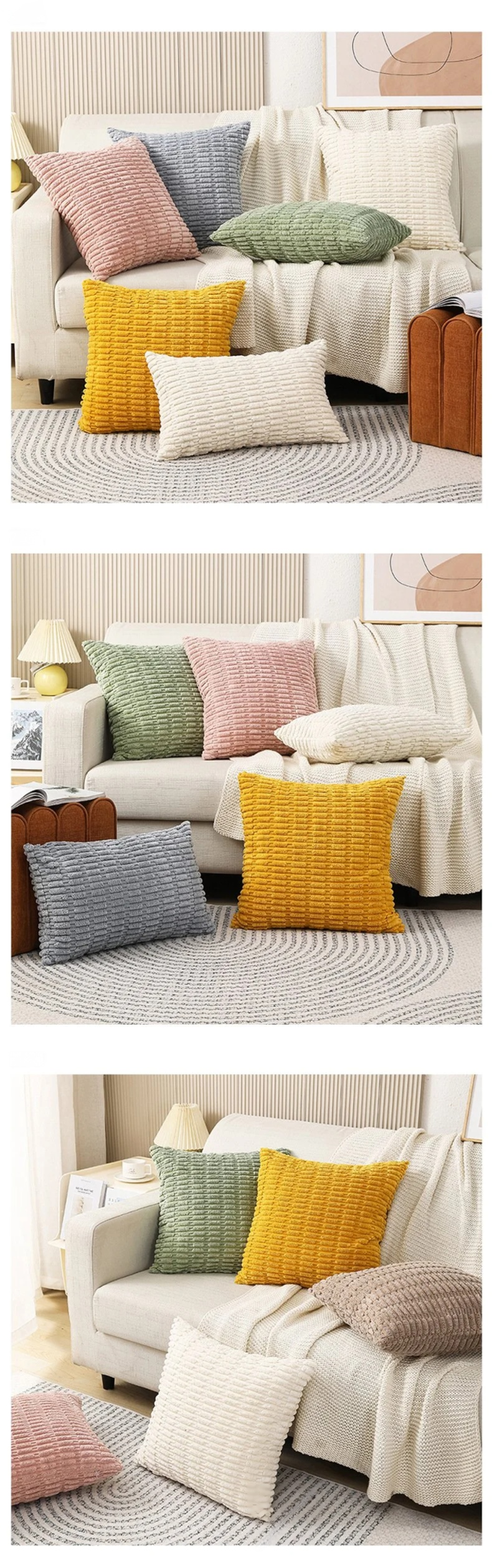沙发抱枕套 纯色方形灯芯绒沙发抱枕 居家装饰靠垫套